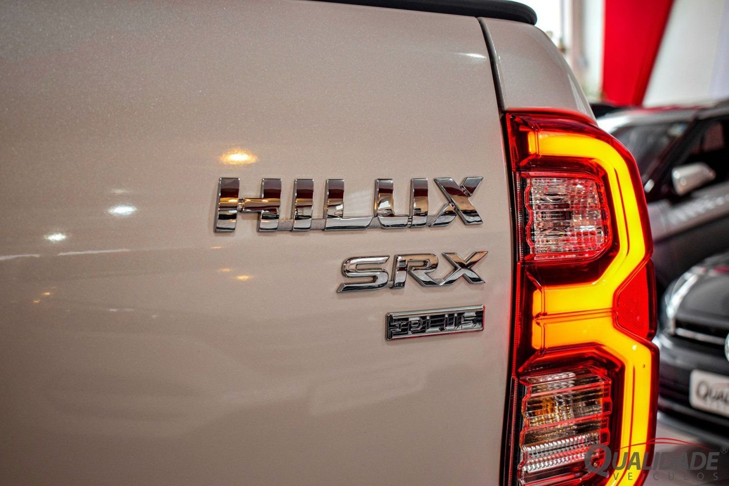 HILUX SRX PLUS 2.8 DIESEL AT 4X4 2024 na cor Branco Lunar Perolizado, de único dono, com apenas 15.077km, revisada em concessionária, sem retoques de pintura, em estado de nova.