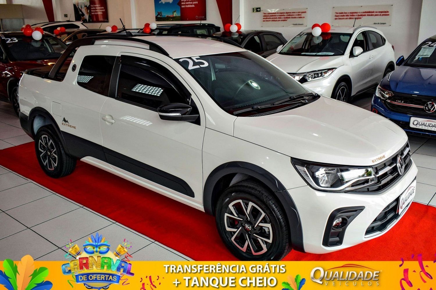 SAVEIRO EXTREME CD 1.6 MT 2025 na cor Branco Cristal, de único dono, com apenas 17.041km. Veículo impecável, em raro estado de conservação.