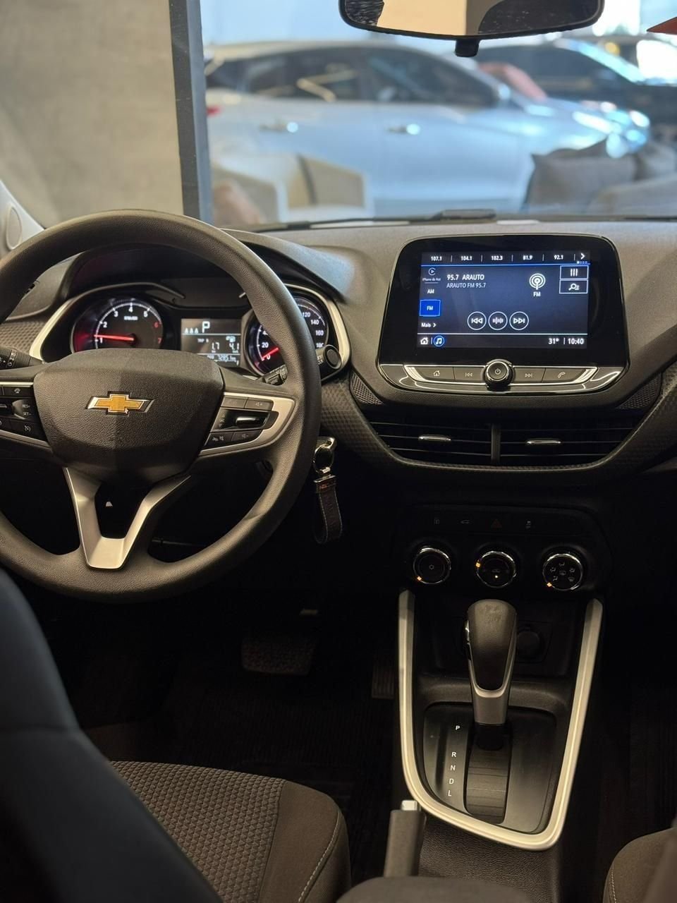 Equipa central multimídia MyLink com espelhamento, ar-condicionado, volante multifuncional e câmera de ré — conforto e conectividade.
