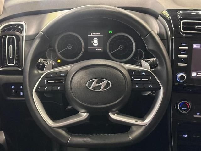Em segurança, o Creta Limited 2022 oferece controles de tração e estabilidade, assistente de partida em rampas, freios ABS, airbags, sensor de estacionamento e câmera de ré, garantindo tranquilidade e proteção em qualquer trajeto.
