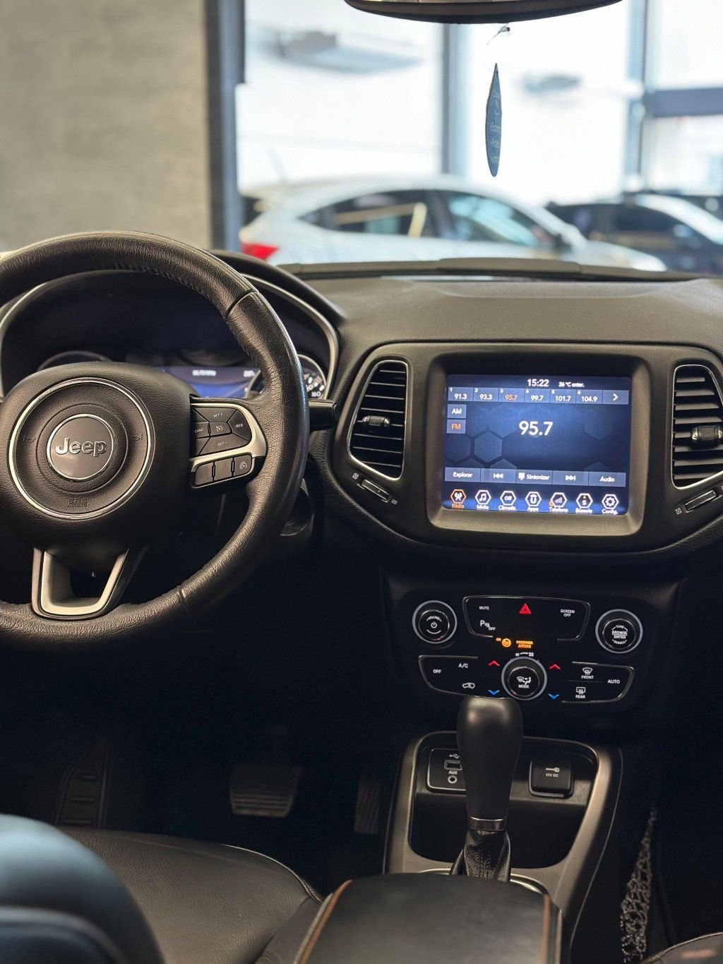 O Jeep Compass Longitude 2.0 Aut. 2019 traz motor 2.0 Flex, com câmbio automático de 6 marchas e tração dianteira. Equipa ar-condicionado, central multimídia touchscreen, bancos em couro, volante multifuncional, sensores de estacionamento, câmera de ré, controle de estabilidade e 6 airbags — conforto e segurança completos para a rotina diária.