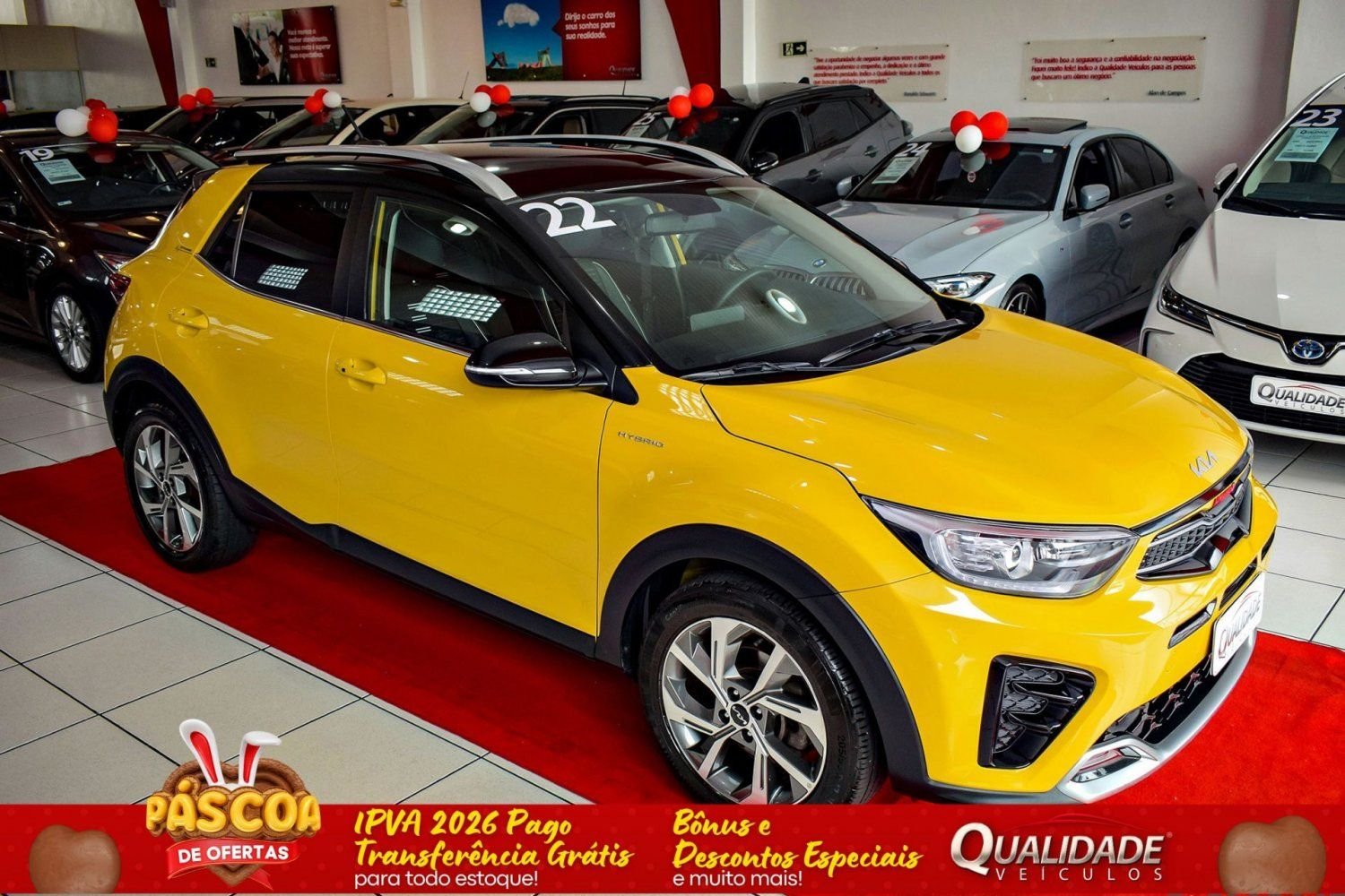 PLACA J, ADQUIRIDO 0KM NA CONCESSIONÁRIA SUN MOTORS-KIA, DE PORTO ALEGRE-RS. STONIC SX HYBRID 1.0 TURBO AT 2022 na cor Amarelo, de único dono, com apenas 26.963km e revisões em concessionária. Veículo impecável, em raro estado de conservação.