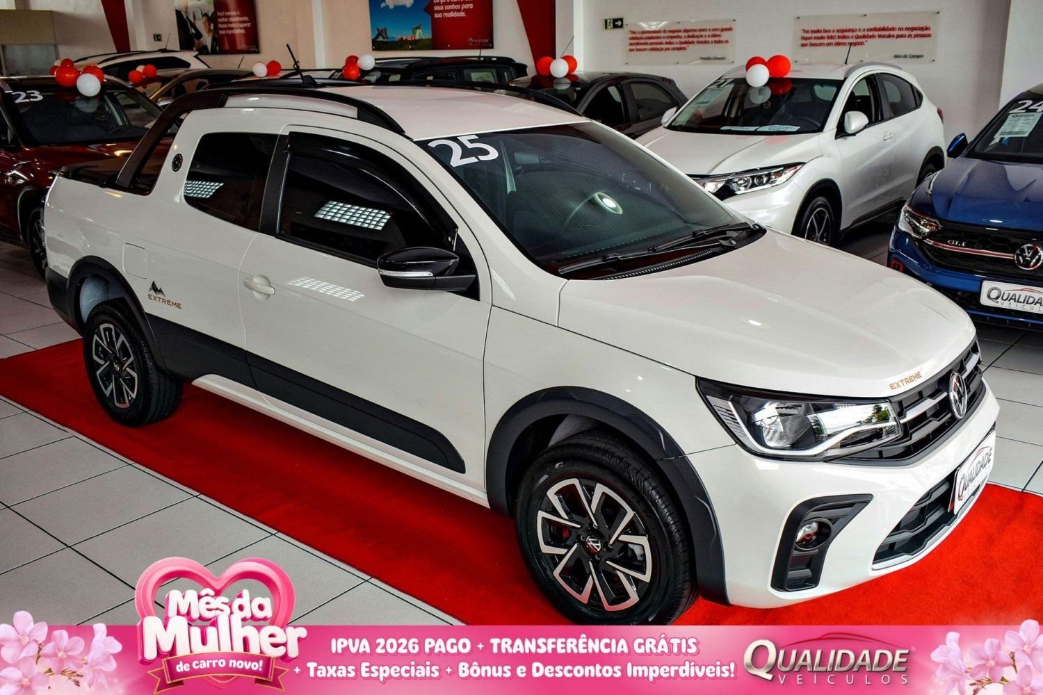 SAVEIRO EXTREME CD 1.6 MT 2025 na cor Branco Cristal, de único dono, com apenas 17.041km. Veículo impecável, em raro estado de conservação.